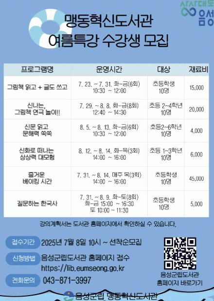 ¸Íµ¿Çõ½Åµµ¼°üÀº ¿©¸§¹æÇÐÀ» ¸Â¾Æ Áö¿ª ÃʵîÇлýµéÀ» ´ë»óÀ¸·Î 6°³ÀÇ °Á¸¦ °³¼³ÇØ ¿À´Â 23ÀϺÎÅÍ 8¿ù 14ÀϱîÁö ¿î¿µÇÑ´Ù.