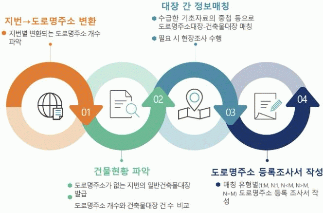 ÀÌ¿¡ ±ºÀº ÁÖ¼Ò Á¤º¸ ü°è º¯°æÀ¸·Î µµ·Î¸íÁÖ¼Ò°¡ ºÎ¿©µÆÀ½¿¡µµ °ÇÃ๰´ëÀå¿¡ °ú°Å ü°èÀÎ Áö¹øÀ¸·Î ±âÀçµÅ Á¤º¸ ºÒÀÏÄ¡¸¦ ¾ß±âÇÏ´Â °ÇÃ๰´ëÀåµéÀ» ´ë»óÀ¸·Î µµ·Î¸íÁÖ¼Ò¸¦ ±âÀçÇÏ´Â µµ·Î¸íÁÖ¼Ò-°Ç¹°Á¤º¸ ÇöÇàÈ »ç¾÷À» ÃßÁøÇϰí ÀÖ´Ù. ¿ÃÇØ´Â Çѱ¹±¹ÅäÁ¤º¸°ø»ç(LX)ÀÇ ÇùÁ¶¸¦ ¾ò¾î 160°ÇÀÇ °ÇÃ๰´ëÀåÀ» ÇöÇàÈÇÒ ¿¹Á¤ÀÌ´Ù.
