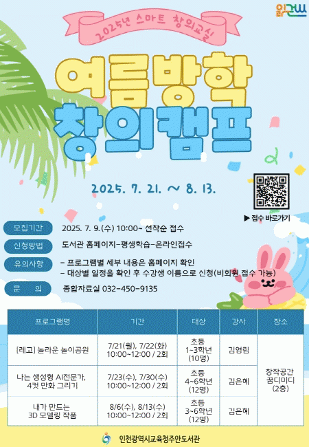 ¼ö¾÷¿¡ ÇÊ¿äÇÑ ÅÂºí¸´, ³ëÆ®ºÏ µî ±³±¸´Â µµ¼°ü¿¡¼ Á¦°øÇϸç, Âü¿© ½ÅûÀº 7¿ù 9ÀÏ ¿ÀÀü 10½ÃºÎÅÍ Á־ȵµ¼°ü ´©¸®Áý¿¡¼ °¡´ÉÇÏ´Ù.