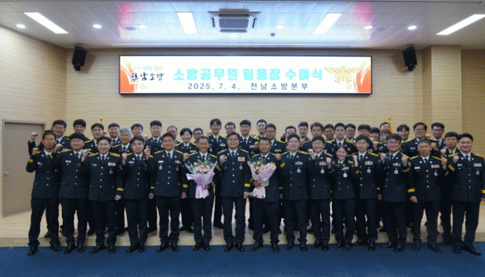 ÃÖ¿ëö Àü³²¼Ò¹æº»ºÎÀåÀº ½ÂÁøÀڵ鿡°Ô Á÷Á¢ °è±ÞÀåÀ» ºÎÂøÇϰí ÀÓ¿ëÀåÀ» ¼ö¿©Çϸç ÃàÇÏ¿Í ÇÔ²² µû¶æÇÑ °Ý·ÁÀÇ ¸Þ½ÃÁö¸¦ ÀüÇß´Ù.