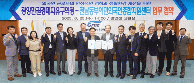 Àü³²´ë ±è¿ë¹Î ¿©¼öºÎÃÑÀåÀº ¡°Àü³²µ¿ºÎÀ̹οܱ¹ÀÎÁ¾ÇÕÁö¿ø¼¾ÅÍ´Â ¿Ü±¹ÀÎ ±Ù·ÎÀÚµéÀÌ ¾ÈÁ¤ÀûÀ¸·Î Á¤ÂøÇÏ°í ±Ç¸®¸¦ º¸È£¹ÞÀ» ¼ö ÀÖµµ·Ï ±³À°°ú »ó´ã, ±ÇÀͱ¸Á¦¿¡ ÃÖ¼±À» ´ÙÇÒ °ÍÀ̸ç, À̹ø Çù¾àÀ» ÅëÇØ GFEZ¿Í ±ä¹ÐÈ÷ Çù·ÂÇÏ¿© ¿Ü±¹ÀÎ ±Ù·ÎÀÚ Áö¿øÀÇ »õ·Î¿î ¸ðµ¨À» ¸¸µé¾î°¡°Ú´Ù¡±°í Çß´Ù.