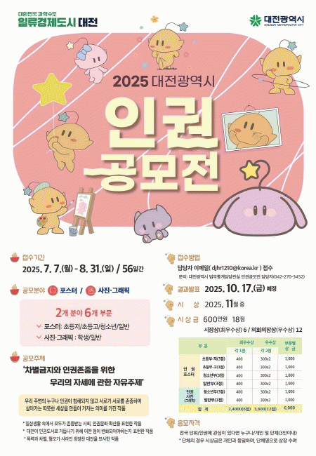 °ø¸ðÀü¿¡ ´ëÇÑ ÀÚ¼¼ÇÑ Á¤º¸´Â ´ëÀü½Ã ´©¸®Áý¿¡¼ È®ÀÎÇÒ ¼ö ÀÖÀ¸¸ç, Á¢¼ö´Â ´ëÀü½Ã Àαǰø¸ðÀü ´ã´çÀÚ À̸ÞÀÏÀ» ÅëÇØ ÇÒ ¼ö ÀÖ´Ù.