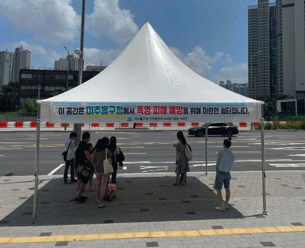 ƯÈ÷ ÇÐÀ͵¿ ½ÃƼ¿À¾¾¿¤ 3¡¤4´ÜÁö ¹ö½ºÁ¤·ùÀå µÎ °÷Àº ¾ÆÁ÷ °íÁ¤Çü ¹ö½º½©ÅͰ¡ ¼³Ä¡µÇÁö ¾Ê¾Æ ¹«´õÀ§¿¡ ±×´ë·Î ³ëÃâµÅ ÀÖ¾úÀ¸³ª, ±¸´Â ÇØ´ç Á¤·ùÀå¿¡ À̵¿½Ä ±×´Ã¸·À» ¼³Ä¡ÇØ ÁֹεéÀÌ ÇÞºµÀ» ÇÇÇÒ ¼ö ÀÖµµ·Ï Á¶Ä¡Çß´Ù.