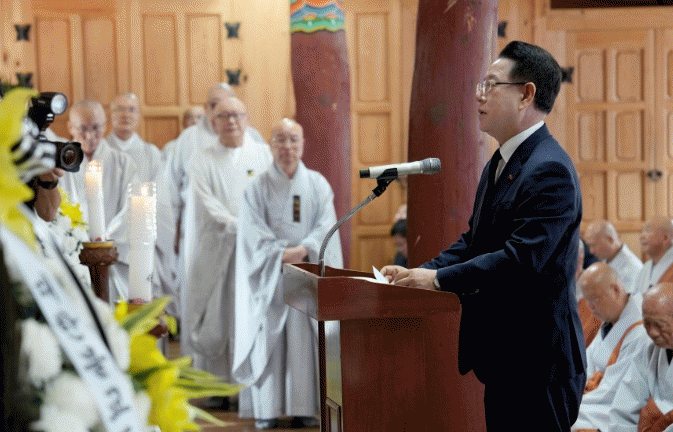 ±è¿µ·Ï Áö»ç´Â Á¶»ç(ðÀÞö)¸¦ ÅëÇØ ¡°¸¸´ç Á¾»çÀÇ »îÀº ²¨ÁöÁö ¾Ê´Â µîºÒ °°Àº Á¤ÁøÀÌÀÚ, Áß»ýÀ» À§ÇÑ º¸»ìÇàÀ̾ú°í, ºÒ°©»ç¸¦ Àü±¹Àû ¼ºÁö·Î Àϱ¸°í, Çѱ¹ºÒ±³°¡ ´ëÁß°ú ¼¼°è·Î ³ª¾Æ°¡´Â ±æÀ» ´ÛÀ¸¼Ì´Ù¡±¸ç ¡°¾ÆÁ÷ ÀÌ·çÁö ¸øÇÑ ±¸Ãþ¸ñž °Ç¸³ÀÇ ¿ø·ÂÀ» °¡½¿¿¡ »õ±â°í, Àü³²µµ°¡ Á¾»ç´ÔÀÌ Àϱº ºÒ±³¹®È ¼ºÁö¸¦ ´õ¿í Àå¾öÇÏ°Ô °¡²Ù°Ú´Ù¡±°í ¸»Çß´Ù.