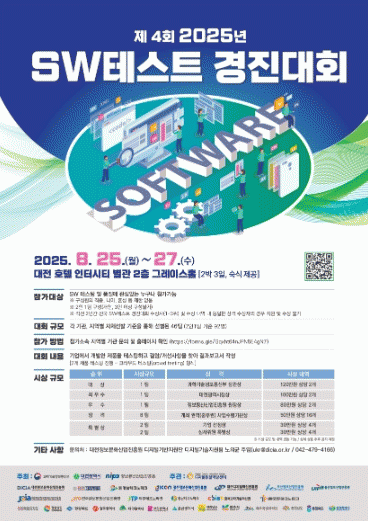 ÀÌ Çà»ç´Â °úÇбâ¼úÁ¤º¸Åë½ÅºÎ¿Í ´ëÀü±¤¿ª½Ã, Á¤º¸Åë½Å»ê¾÷ÁøÈï¿øÀÌ ÁÖÃÖÇϰí Á¦ÁÖTP¸¦ Æ÷ÇÔÇÑ Àü±¹ 13°³ µðÁöÅÐǰÁú¿ª·®¼¾ÅͰ¡ °øµ¿À¸·Î ÁÖ°üÇÏ´Â Àü±¹ À¯ÀÏÀÇ ¼ÒÇÁÆ®¿þ¾î(SW) Å×½ºÆ® ºÐ¾ß °æÁø´ëȸ´Ù.