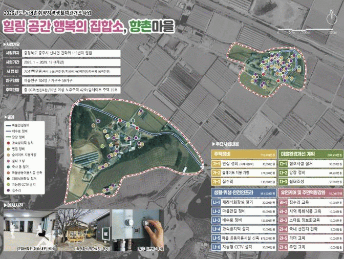ÀÌ ¸¶À»Àº À̹ø »ç¾÷À» ÅëÇØ ¡â³ëÈÄ ½½·¹ÀÌÆ® ÁöºØ °³·® 32È£ ¡âÁý¼ö¸® 28È£ ¡âÀç·¡½Ä ÈÀå½Ç Á¤ºñ 6È£ ¡â¸¶À» ¾È±æ Á¤ºñ ¡â¹è¼ö·Î ¼³Ä¡ ¡â¸¶À»È¸°ü ½ÅÃà ¡âCCTV ¹× °ú¼Ó¹æÁöÅÎ ¼³Ä¡ ¡â´ãÀåÁ¤ºñ ¹× ½°ÅÍÁ¶¼º ¡âÁֹοª·®°È ±³À° µî ÀÎÇÁ¶óÀÇ °³¼±ÀÌ ´ë´ëÀûÀ¸·Î ÃßÁøµÈ´Ù.