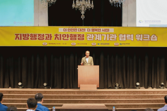 ¹ÚÈñ¿ë ´ëÀü½Ã ÀÚÄ¡°æÂûÀ§¿øÀåÀº ¡°ÀÚÄ¡°æÂû»ç¹«´Â ƯÁ¤ ±â°üÀÇ ¾÷¹«¸¦ ³Ñ¾î Áö¹æÀÚÄ¡¿Í Ä¡¾ÈÀÌ ÇÔ²² Ç®¾î¾ß ÇÒ °øµ¿ °úÁ¦¡±¶ó¸ç, ¡°À̹ø ¿öÅ©¼óÀÌ ÇöÀå ½Ç¹«ÀÚµéÀÇ °æÇèÀ» °øÀ¯ÇÏ°í ±â°ü °£ Çù¾÷À» ÃËÁøÇÏ´Â °è±â°¡ µÇ¾î, ½Ã¹ÎÀÇ ¾ÈÀü°ú ½Å·Ú¸¦ ´õ¿í ³ôÀÏ ¼ö Àֱ⸦ ±â´ëÇÑ´Ù¡±¶ó°í ¸»Çß´Ù.