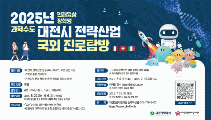 ½Åû ±â°£Àº 7¿ù 9ÀϺÎÅÍ 18ÀϱîÁöÀ̸ç, À̸ÞÀÏÀ» ÅëÇØ Á¢¼ö¹Þ´Â´Ù. ½Åû ¹æ¹ý°ú ÀÚ¼¼ÇÑ ³»¿ëÀº ´ëÀüû³â³»ÀÏÀç´Ü ȨÆäÀÌÁö °ø°í¸¦ ÅëÇØ È®ÀÎÇÒ ¼ö ÀÖ´Ù.