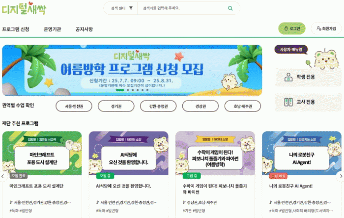 ½Åû ¹æ¹ýÀº 7¿ù 7ÀϺÎÅÍ 8¿ù 31ÀϱîÁö »ó½Ã ½ÅûÀ¸·Î ¿©¸§¹æÇÐ ±â°£À̸ç, µðÁöÅлõ½Ï ´©¸®Áý¿¡¼ ¿øÇÏ´Â ÇÁ·Î±×·¥À» ¼±ÅÃÇÏ¿© ½ÅûÇÒ ¼ö ÀÖ´Ù.