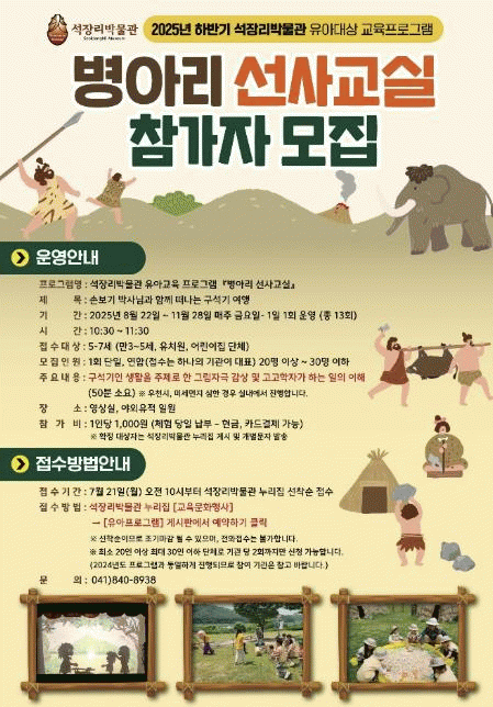 À̹ø ÇÁ·Î±×·¥Àº ¡®¼Õº¸±â ¹Ú»ç´Ô°ú ÇÔ²² ¶°³ª´Â ±¸¼®±â ¿©Ç࡯À̶ó´Â Á¦¸ñÀ¸·Î ÁøÇàµÇ¸ç, °í°íÇÐÀÚ°¡ ÇÏ´Â ÀÏÀ» üÇèÇϰí, ±¸¼®±â ½Ã´ë ¼®À帮 À¯Àû¿¡¼ ÃâÅäµÈ ¶¾¼®±âÀÇ À̸§°ú ¾²ÀÓ»õ¸¦ ±×¸²ÀÚ ³îÀÌ·Î ½±°í Àç¹ÌÀÖ°Ô ¹è¿ï ¼ö ÀÖ´Â ½Ã°£À» ¸¶·ÃÇÒ ¿¹Á¤ÀÌ´Ù.