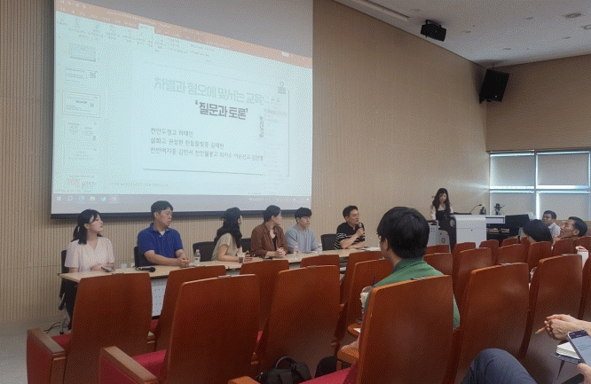 À̾î õ¾È¿ùºÀ°íµîÇб³ ÃÖÁö¼ö ±³»ç´Â 'Â÷º°°ú Çø¿À¸¦ ³Ñ¾î, °ø°¨À¸·Î Åë(÷×)ÇÏ´Â Áú¹® ¼ö¾÷'À» ÅëÇØ À±¸® ±³À°ÀÇ ½ÉÈµÈ Á¢±Ù¹ýÀ» °øÀ¯ÇßÀ¸¸ç, ¸¶Áö¸·À¸·Î À̼ø½Å°íµîÇб³ ±è¼±¸í ±³»ç´Â '½½±â·Î¿î °¥µî °ü¸® ÇÁ·ÎÁ§Æ® ¼ö¾÷'À» À¶ÇÕ ¼ö¾÷ »ç·Ê·Î ¼Ò°³Çϸç, ´Ù¾çÇÑ Áú¹®À» ÅëÇØ Âü¿©ÀÚµéÀÇ È°¹ßÇÑ ¼ÒÅëÀ» À̲ø¾ú´Ù.