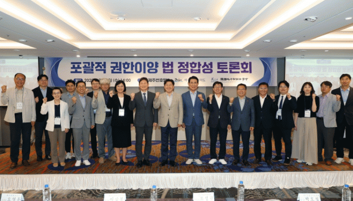 ¡®Æ÷°ýÀû ±ÇÇÑÀÌ¾ç ¹ý Á¤ÇÕ¼º Åä·Ðȸ¡¯°¡ 9ÀÏ ¿ÀÈÄ Á¦ÁÖ½ãÈ£ÅÚ¿¡¼ Á¦ÁÖÆ¯º°ÀÚÄ¡µµ-Çѱ¹Áö¹æÀÚÄ¡¹ýÇÐȸ °øµ¿ ÁÖÃÖ¡¤ÁÖ°üÀ¸·Î ¿·È´Ù.