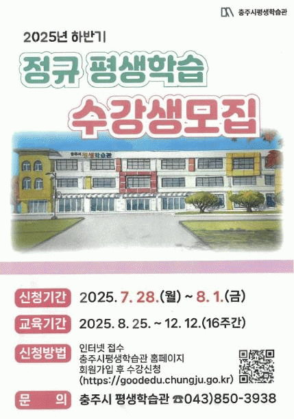 ¼ö° ½ÅûÀº ¿À´Â 7¿ù 28ÀϺÎÅÍ 8¿ù 1ÀϱîÁö ÃæÁÖ½ÃÆò»ýÇнÀ°ü ´©¸®Áý¿¡¼ ȸ¿ø°¡ÀÔ ÈÄ ¼ö° ½ÅûÇÏ¸é µÈ´Ù.
