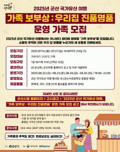 °¡Á· º¸ºÎ»ó°ú º°º°ºÎ½º ½Åû¼ ¹× ÀÚ¼¼ÇÑ »çÇ×Àº ±º»ê½Ãû ´©¸®Áý(Çà»ç¾È³»)À» Âü°íÇϰųª ±º»ê ±¹°¡À¯»ê ¾ßÇà ´ëÇà»ç·Î ¹®ÀÇÇÏ¸é µÈ´Ù.