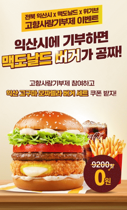 '°íÇâ»ç¶ûÀÌ(e)À½' ¶Ç´Â ¹Î°£Ç÷§Æû 'À§±âºê'¸¦ ÅëÇØ ÀÍ»ê½Ã¿¡ 10¸¸ ¿ø ÀÌ»ó ±âºÎÇϸé 9,200¿ø »ó´çÀÇ 'ÀÍ»ê °í±¸¸¶ ¸ðÂ¥·¼¶ó ¹ö°Å ¼¼Æ®' ¸ð¹ÙÀÏ ÄíÆùÀ» ÁõÁ¤ÇÑ´Ù.