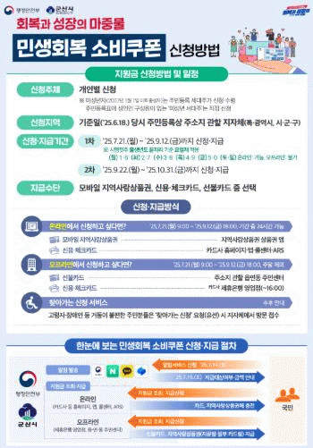 À̹ø ¼ÒºñÄíÆù Áö±ÞÀº ½Ã¹Î »ýȰ ¾ÈÁ¤°ú Áö¿ª ³» ¼Òºñ ÁøÀÛÀ» ÅëÇØ ħüµÈ °æ±â ȸº¹°ú °ñ¸ñ»ó±Ç Ȱ¼ºÈ¸¦ µ¿½Ã¿¡ µµ¸ðÇϱâ À§ÇØ ¸¶·ÃµÈ °ÍÀ¸·Î, 1Â÷¿Í 2Â÷·Î ³ª´² ´Ü°èÀûÀ¸·Î ÃßÁøµÈ´Ù.