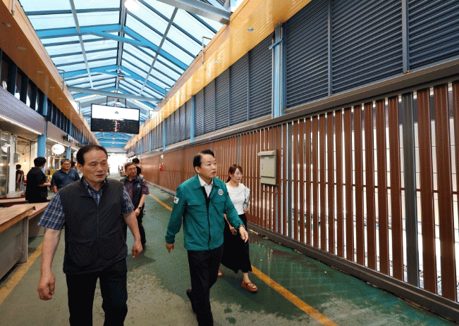 ±èÂùÁø ûÀåÀº Æø¿°À¸·Î ÇÇÇØ°¡ ¿ì·ÁµÇ´Â ½ÃÀå »óÀεé°ú ¹æ¹®°´µéÀ» ¸¸³ª ¾ÈºÎ¸¦ ¹¯°í, Æø¿° ´ëÀÀ ¹°Ç°°ú ³Ã¹æ Àåºñ ¿î¿µ ÇöȲ µîÀ» Á¡°ËÇß´Ù.