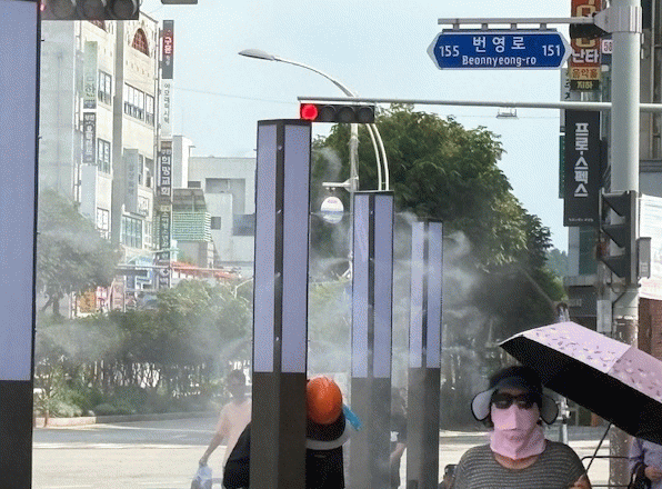 À̹ø¿¡ ¼³Ä¡µÈ ¹Ì½ºÆ®ÆúÀº ¹«´õ¿î ³¯¾¾ ¼Ó¿¡¼µµ ÁֹεéÀÌ Àá½Ã³ª¸¶ ´õÀ§¸¦ ½ÄÈ÷°í ÄèÀûÇÑ ¿ÜºÎ Ȱµ¿À» ÇÒ ¼ö ÀÖµµ·Ï µ½±â À§ÇÑ ½Ã¼³·Î, ¹Ì¼¼ÇÑ ¹°ÀÔÀÚ¸¦ ºÐ»çÇØ ü°¨ ¿Âµµ¸¦ 2~5µµ °¡·® ³·ÃçÁÖ´Â È¿°ú°¡ ÀÖ´Ù.