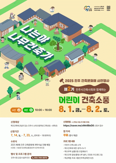 ÁøÁֽð¡ ÁÖÃÖÇÏ°í ´ëÇѰÇÃà»çÇùȸ ÁøÁÖ½ÃÁö¿ª°ÇÃà»çȸ°¡ ÁÖ°üÇÏ´Â ¾î¸°ÀÌ °ÇÃà¼ÒdzÀº Àü¹® °ÇÃà»çµé°ú ÇÔ²² °ÇÃàÀÇ ¼¼°è¸¦ Á÷Á¢ üÇèÇÏ¸ç µµ½Ã°ø°£°ú °ÇÃà¿¡ ´ëÇÑ Èï¹Ì¿Í °ü½ÉÀ» ³ôÀÏ ¼ö Àִ Ưº°ÇÑ Ã¼ÇèÇà»ç·Î, ¿À°¨À¸·Î °ÇÃàÀ» ÀÌÇØÇÏ°í ¹è¿ï ¼ö ÀÖ´Â ±âȸ¸¦ Á¦°øÇÑ´Ù.