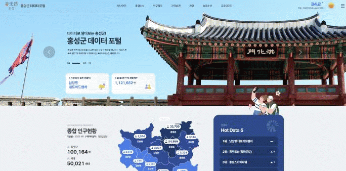 È«¼º±º µ¥ÀÌÅÍÆ÷ÅÐ ¼ºñ½º´Â ÃÑ 7Á¾ 30°³ ¸Þ´º·Î ±¸¼ºµÇ¾î, Àç³¾ÈÀü, È«¼º¼Ò½Ä, Àα¸º¹Áö, Áö¿ª»ó±Ç, °ü±¤, ³óÃà¼ö»ê, °ø°øµ¥ÀÌÅÍ ºÐ¼® ¹× ½Ã°¢È °á°ú¸¦ È®ÀÎÇÒ ¼ö ÀÖ´Ù.