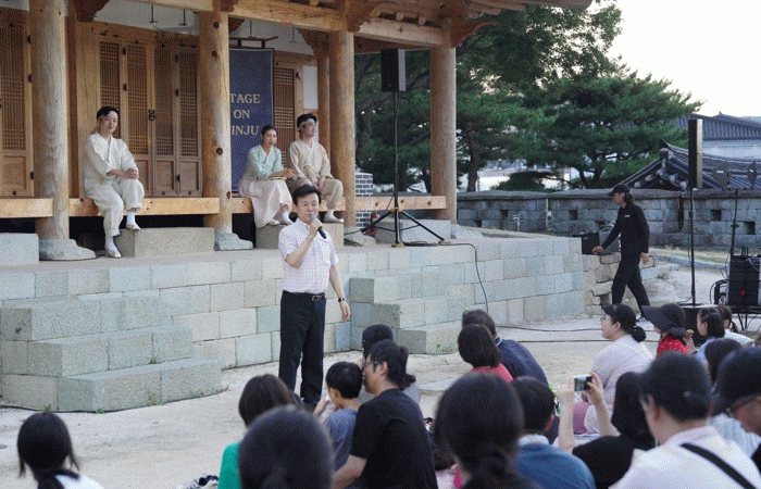 Çà»ç ù³¯¿¡´Â Á¶±ÔÀÏ ÁøÁÖ½ÃÀåÀÌ Á÷Á¢ Çà»ç ÇöÀåÀ» ã¾Æ Âü°¡ÀÚµé°ú Àλ縦 ³ª´©°í, °ø¿¬À» ÇÔ²² °ü¶÷Çϸ硰ÁøÁÖÀÇ ¿ª»ç¹®ÈÀÚ¿øÀ» Ȱ¿ëÇÑ À̹ø °ø¿¬Çü µµº¸Åõ¾î´Â Áö¿ª °íÀ¯ÀÇ Á¤Ã¼¼º°ú À̾߱â ÀÚ¿øÀ» °ü±¤ ÄÜÅÙÃ÷·Î ÀçÇØ¼®ÇÑ »ç·Ê¡±¶ó¸ç, ¡°¾ÕÀ¸·Îµµ ´Ù¾çÇÑ ¹æ½ÄÀÇ ÇÁ·Î±×·¥À» È®´ëÇØ Áö¿ª°ü±¤ Ȱ¼ºÈ¿Í Áö¿ª°æÁ¦¿¡ Ȱ·ÂÀ» ºÒ¾î³Ö°Ú´Ù¡±´Â ¶æÀ» ¹àÇû´Ù.