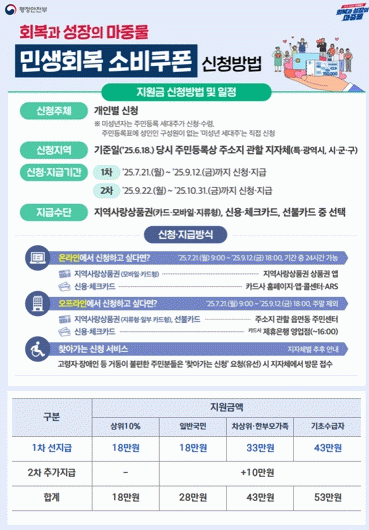 ÀüÁֽô ¿À´Â 21ÀϺÎÅÍ 9¿ù 12ÀϱîÁö ¿Â¶óÀÎ(Ä«µå»ç ȨÆäÀÌÁö¡¤¾Û)°ú ¿ÀÇÁ¶óÀÎ(µ¿ Áֹμ¾ÅÍ ¹æ¹®)À» ÅëÇØ ¹Î»ýȸº¹ ¼ÒºñÄíÆù Áö±ÞÀ» À§ÇÑ 1Â÷ ½ÅûÀ» ¹Þ´Â´Ù°í 14ÀÏ ¹àÇû´Ù.