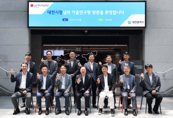 ÀÌÀå¿ì ´ëÀü½ÃÀåÀº 14ÀÏ ¿ÀÀü 11½Ã, ´ë´öƯ±¸ ³» LG¿¡³ÊÁö¼Ö·ç¼Ç ±â¼ú¿¬±¸¿øÀ» ¹æ¹®ÇØ ¿¬±¸°³¹ß ÇöȲÀ» Á¡°ËÇϰí ÇâÈÄ Çù·Â ¹æ¾ÈÀ» ³íÀÇÇß´Ù.