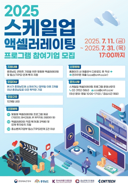 Ãæ³²ÄÜÅÙÃ÷±â¾÷Áö¿ø¼¾ÅÍ´Â 2019³â °³¼Ò ÀÌÈÄ Áö¿ªÀÇ ÄÜÅÙÃ÷ ±â¾÷Áö¿ø ÀÎÇÁ¶ó·Î¼ º¸À°°ø°£ Á¦°ø ¹× ¸Å³â ¡®½ºÄÉÀϾ÷ ¾×¼¿·¯·¹ÀÌÆÃ ÇÁ·Î±×·¥¡¯À» ÅëÇØ ¿ì¼ö ÄÜÅÙÃ÷ ±â¾÷À» ¼±Á¤ÇÏ°í ÆÁ½º(TIPS)¿Í ¿¬°èÇß´Ù.