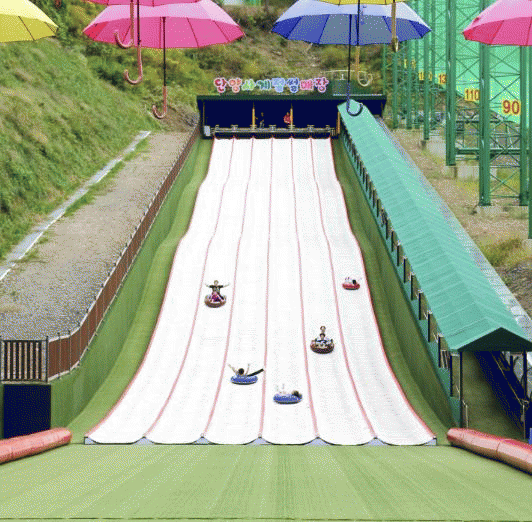 ´Ü¾ç»ç°èÀý½ä¸ÅÀåÀº ±æÀÌ 78m, °æ»ç 13µµÀÇ ½½·ÎÇÁ 6°³ ·¹ÀÎÀ¸·Î ±¸¼ºµÅ ÀÖÀ¸¸ç, ³»·Á¿Ã ¶§ÀÇ ¼Óµµ°¨°ú ½º¸±·Î °¡Á· ´ÜÀ§ °ü±¤°´µé¿¡°Ô ²ÙÁØÇÑ Àα⸦ ²ø°í ÀÖ´Ù.