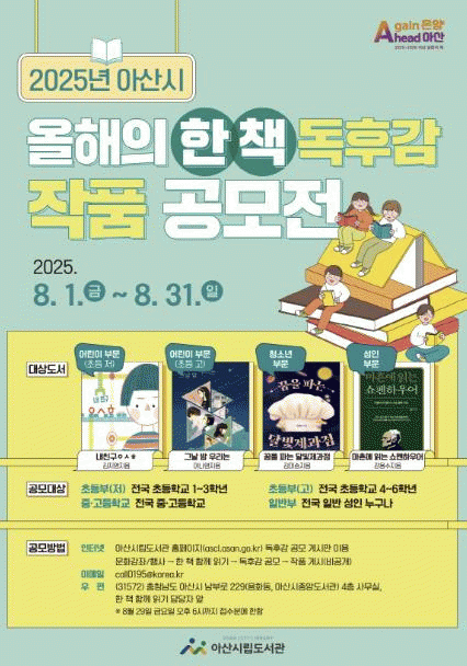 °ø¸ð ´ë»ó µµ¼´Â ¡®2025³â ¾Æ»ê½Ã ¿ÃÇØÀÇ ÇÑ Ã¥¡¯À¸·Î ¼±Á¤µÈ ¡ã±èÁö¿µ ÀÛ°¡ÀÇ ¡®³»Ä£±¸ ¤·¤µ¤¾¡¯ ¡ãÀ̳ª¿µ ÀÛ°¡ÀÇ ¡®±×³¯ ¹ã ¿ì¸®´Â¡¯ ¡ã±è¹Ì½Â ÀÛ°¡ÀÇ ¡®²ÞÀ» ÆÄ´Â ´ÞºûÁ¦°úÁ¡¡¯ ¡ã°¿ë¼ö ÀÛ°¡ÀÇ ¡®¸¶Èç¿¡ Àд ¼îÆæÇÏ¿ì¾î¡¯ ÃÑ 4±ÇÀÌ´Ù.