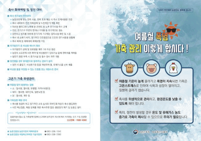 ¿©¸§Ã¶ °¡Ãà Æó»çÀÇ ÁÖ¿ä ¿øÀÎ Áß ÇϳªÀÎ Ãà»çÀÇ Á¤Àü¡¤´©Àü¿¡ ´ëºñÇϱâ À§ÇØ, Ãà»ç ³» ³Ã¹æ ¹× ȯ±â½Ã¼³, ºñ»ó ¹ßÀü±â µî Àåºñ¸¦ ¼ö½Ã·Î Á¡°ËÇØ¾ß Çϸç, ÃæºÐÇÑ È¯±â¿Í ³Ãdz±â, ¾È°³ ºÐ¹«±â¸¦ °¡µ¿ÇØ Ãà»ç ³»¿ÜºÎ ¿Âµµ¸¦ ³·Ãß´Â °ÍÀÌ Áß¿äÇÏ´Ù.