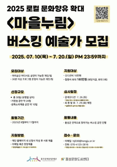À½¾Ç, ÆÛÆ÷¸Õ½º, ¹«¿ë, ÀüÅ뿹¼ú µî ´Ù¾çÇÑ À帣ÀÇ °Å¸®°ø¿¬ÀÌ °¡´ÉÇÑ °³ÀÎ ¶Ç´Â ´Üü¶ó¸é ´©±¸µç ½Åû °¡´ÉÇϸç, ¼·ùÁ¢¼ö´Â ¿À´Â 20ÀϱîÁöÀÌ´Ù. 1Â÷ ½É»ç¸¦ Åë°úÇÑ ¾à 45ÆÀÀ» ´ë»óÀ¸·Î ¿À´Â 26ÀÏ(Åä) Àú³á È«ÁÖÀ¾¼º ¾ß¿Ü Ư¼³¹«´ë¿¡¼ 2Â÷ ½É»çÀÎ °ø°³¿Àµð¼ÇÀ» °³ÃÖÇÒ ¿¹Á¤À̸ç, ÃÖÁ¾ ¼±Á¤µÈ 30¿© °³ÀÇ °ø¿¬ÆÀÀº ÀÌÈÄ °ø¿¬ Ȱµ¿À» ÅëÇØ ÃÖ´ë 180¸¸¿øÀÇ È°µ¿ºñ¸¦ Áö¿ø¹Þ°Ô µÈ´Ù.