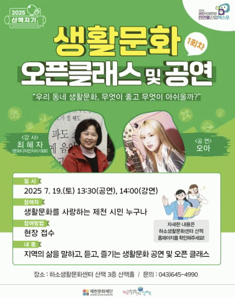 À̹ø ¿ÀÇ Ŭ·¡½º´Â Áö¿ª ³» »ýȰ¹®È µ¿È£È¸, »êÃ¥ Áö±â, »ýȰ¹®È ¾ÖÈ£°¡ µîÀ» ´ë»óÀ¸·Î ÇÑ °¿¬°ú °ø¿¬ ÇÁ·Î±×·¥À¸·Î ±¸¼ºµÆ´Ù. ¡®¿ì¸® µ¿³× »ýȰ¹®È, ¹«¾ùÀÌ ÁÁ°í ¹«¾ùÀÌ ¾Æ½¬¿ï±î?¡¯¶ó´Â ÁÖÁ¦·Î »ýȰ¹®ÈÀÇ ÇöÀ縦 Áø´ÜÇϰí, ¹Ì·¡¸¦ ÇÔ²² ¸ð»öÇÏ´Â ½Ã°£À» ¸¶·ÃÇÑ´Ù.