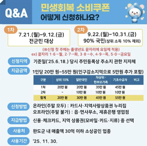 ¼Òºñ ÄíÆùÀº 1Â÷¿Í 2Â÷·Î ³ª´² ´Ü°èÀûÀ¸·Î Áö±ÞµÇ¸ç Àα¸ °¨¼Ò Áö¿ªÀÎ ¿Ïµµ±ºÀº 5¸¸ ¿øÀÌ Ãß°¡µÅ 1Â÷·Î ¡ãÀÏ¹Ý ±º¹Î 20¸¸ ¿ø ¡ãÂ÷»óÀ§ °èÃþ¡¤ÇѺθ𠰡Á· 35¸¸ ¿ø ¡ã±âÃÊ »ýȰ ¼ö±ÞÀÚ 45¸¸ ¿øÀÌ Áö±ÞµÈ´Ù.