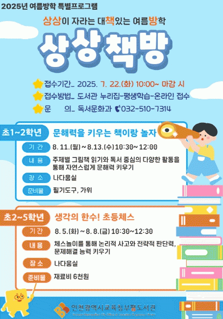 ÁÖ¿ä ÇÁ·Î±×·¥Àº ¡ã8¿ù 5ÀϺÎÅÍ 8ÀϱîÁö Ãʵî 2~5Çг⠴ë»óÀ¸·Î ü½ºÀÇ ±âº» ±ÔÄ¢À» ¹è¿ì°í Àü·«Àû »ç°í¸¦ ±â¸£´Â ¡®»ý°¢ÀÇ ÇѼö! Ãʵîü½º¡¯ ¡ã 8¿ù 11ÀϺÎÅÍ 8¿ù 13ÀϱîÁö Ãʵî 1~2Çг⠴ë»ó ±×¸²Ã¥ Àбâ¿Í µ¶ÈÄ È°µ¿À» ÅëÇÑ ¹®ÇØ·Â Çâ»ó ÇÁ·Î±×·¥ ¡®¹®Çط Ű¿ì´Â Ã¥À̶û ³îÀÚ¡¯ µî ÀÌ´Ù.