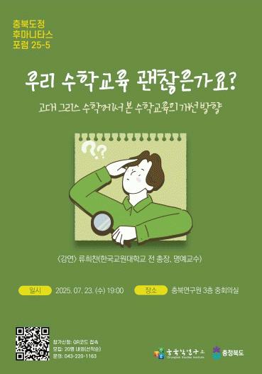 À̹ø Æ÷·³¿¡¼´Â °í´ë ±×¸®½º ¼öÇÐÀÇ º»Áú°ú ±³À° öÇÐÀ» ¹ÙÅÁÀ¸·Î ¿À´Ã³¯ Çѱ¹ ¼öÇб³À°ÀÇ ¹®Á¦Á¡À» Áø´ÜÇÏ°í °³¼± ¹æÇâÀ» ¸ð»öÇÑ´Ù. ÇöóÅæ, À¯Å¬¸®µå, ¾Æ¸£Å°¸Þµ¥½º µîÀÇ °í´ë »ç»ó°¡µéÀÌ ¼öÇÐÀ» »î°ú ¹®ÈÀÇ Á߽ɿ¡ µÎ¾ú´ø ¹æ½Ä¿¡ ÁÖ¸ñÇϸç, ´Ü¼ø °è»ê Áß½ÉÀÇ ±³À°¿¡¼ ¹þ¾î³ª »ç°í·Â°ú ±³¾çÀ» Ű¿ì´Â ±³À°À¸·Î ÀÚ¸® Àâ¾Æ¾ß ÇÑ´Ù´Â °üÁ¡À» Á¦¾ÈÇÒ ¿¹Á¤ÀÌ´Ù.