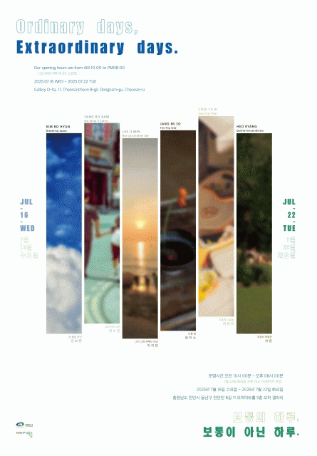 À̹ø Àü½Ã´Â 6ÀÎÀÇ ¿¹ºñÀÛ°¡°¡ °¢ÀÚÀÇ ½Ã¼±À¸·Î Æò¹üÇÑ ÀÏ»ó ¼Ó Ưº°ÇÑ ¼ø°£À» »çÁø¿¡ ´ã¾Æ³»¸ç, ¹Ýº¹µÇ´Â ÇÏ·ç ¼Ó ÈçÈ÷ Áö³ªÄ¥ ¼ö ÀÖ´Â Àå¸éµéÀ» ÀÛ°¡ÀÇ °üÁ¡À¸·Î »õ·Ó°Ô ÀçÇØ¼®Çß´Ù.