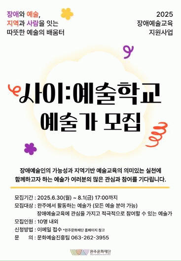 ¸ðÁý ´ë»óÀº ¿ÏÁÖ¿¡¼ Ȱµ¿ ÁßÀ̰ųª Ȱµ¿ °¡´ÉÇÑ ¸ðµç ¿¹¼ú ºÐ¾ßÀÇ ¿¹¼úÀÎÀ¸·Î, Àå¾Ö¿¹¼ú±³À°¿¡ °ü½ÉÀ» °¡Áö°í Àû±ØÀûÀ¸·Î Âü¿©ÇÒ ¼ö ÀÖ´Â »ç¶÷À̶ó¸é ´©±¸³ª Áö¿øÇÒ ¼ö ÀÖ´Ù.