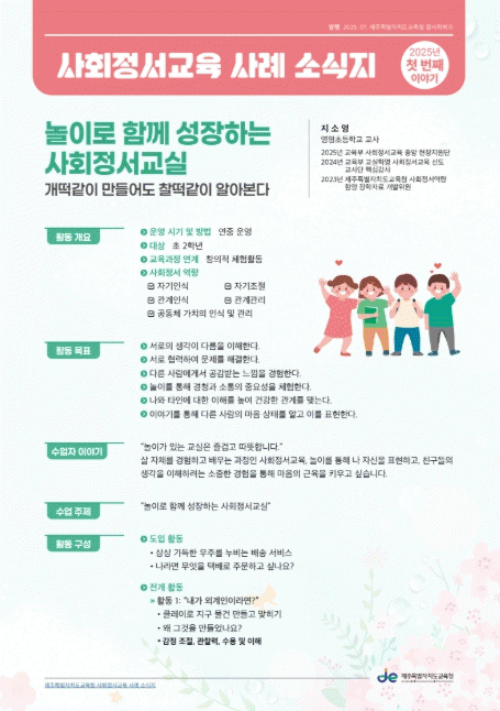 À̹ø ¼Ò½ÄÁö´Â ±³½Ç¿¡¼ ½ÇõµÈ âÀÇÀûÀÌ°í µû¶æÇÑ »çȸÁ¤¼±³À° »ç·Ê¸¦ Áß½ÉÀ¸·Î ±¸¼ºµÆÀ¸¸ç ³îÀÌ?Çù·Â?°ø°¨?ÀÚ±âÀÌÇØ¸¦ ¹ÙÅÁÀ¸·Î ÇлýµéÀÇ »çȸÁ¤¼¿ª·®À» ±â¸£´Â ´Ù¾çÇÑ È°µ¿À» ¼Ò°³Çϰí ÀÖ´Ù.