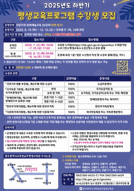 ¼ö° ½ÅûÀº ¿À´Â 22~25ÀÏ¿¡´Â ±ÝÈ£Æò»ý±³À°°ü ´©¸®ÁýÀ» ÅëÇØ ¿Â¶óÀÎ Á¢¼öÇÒ ¼ö ÀÖÀ¸¸ç, 8¿ù 12~16ÀÏ¿¡´Â ¿î¿µ°ú·Î ¹æ¹® Á¢¼öÇÏ¸é µÈ´Ù.