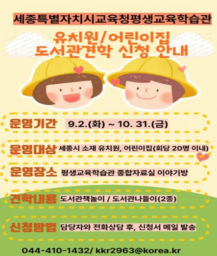 À̹ø ÇÁ·Î±×·¥Àº ¿À´Â 9¿ù 2ÀϺÎÅÍ 10¿ù 31ÀϱîÁö °ü³» À¯Ä¡¿ø ¹× ¾î¸°ÀÌÁýÀ» ´ë»óÀ¸·Î ¸ÅÁÖ È¿äÀϺÎÅÍ ±Ý¿äÀϱîÁö ¿î¿µµÇ´Â µµ¼°ü ÇöÀå üÇè ÇÁ·Î±×·¥ÀÌ´Ù.