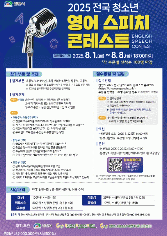 Âü°¡ÀÚ°ÝÀº Çб³ ¹Û û¼Ò³âÀ» Æ÷ÇÔÇÑ Àü±¹ ÃʵîÇб³ 3ÇгâºÎÅÍ Áß?°íµîÇлý±îÁöÀ̸ç, ÃʵîºÎA(3~4Çгâ), ÃʵîºÎB(5~6Çгâ), ÁßµîºÎ, °íµîºÎÀÇ 4°³ ºÎ¹®À¸·Î ºÎ¹®º° 100¸í µî ÃÑ 400¸íÀ» ¼±Âø¼ø ¸ðÁýÇÑ´Ù.