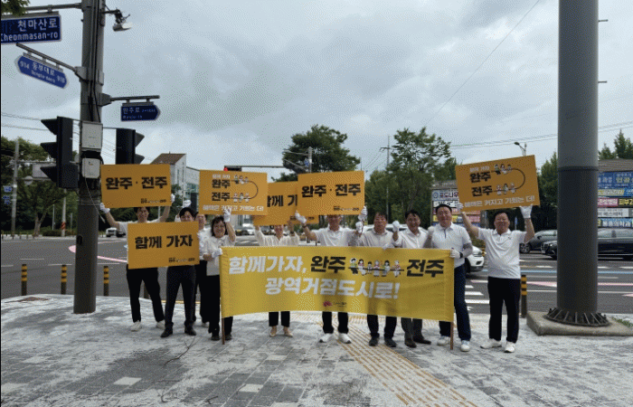 ÀüÁֽà »õ¸¶À»È¸(ȸÀå ¼Ûº´¿ë) µî ¿ÏÁÖ¡¤ÀüÁÖ ÅëÇÕÀ» ÁöÁöÇÏ´Â ÀÚ»ý¡¤¹Î°£´Üü ȸ¿øµéÀº 17ÀϺÎÅÍ ÇàÁ¤¾ÈÀüºÎÀÇ ÁÖ¹ÎÅõÇ¥ ±Ç°í Àü±îÁö ¸ÅÀÏ ¿ÏÁÖ¿Í ÀüÁÖÀÇ Á¢°æÁö¿ª ÁÖ¿ä±³Â÷·Î 8°÷¿¡¼ Ãâ±Ù±æ ½Ã¹ÎµéÀ» ´ë»óÀ¸·Î ´ë´ëÀûÀÎ È«º¸ Ä·ÆäÀÎÀ» Àü°³ÇÑ´Ù.