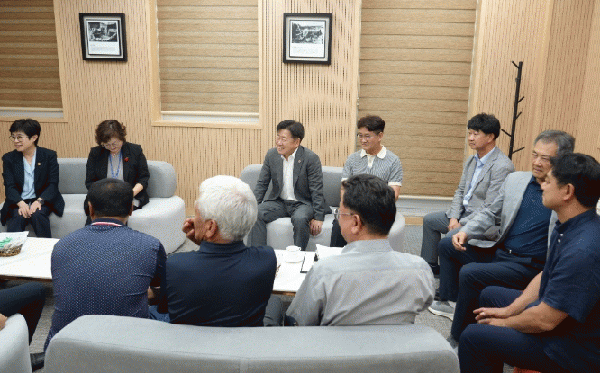 ¿À¿µÈÆ Áö»ç´Â ÀÚÄ¡ÇàÁ¤ °ü·Ã ºÎ¼ °ø¹«¿øµéÀÌ ¹è¼®ÇÑ °¡¿îµ¥ ¼±ÍÆ÷½Ã¹Î 12¸íÀ» ¸¸³ª Áö¿ª Çö¾È 2°Ç¿¡ ´ëÇÑ ÀǰßÀ» ±³È¯Çß´Ù.