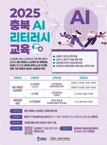 ¡®ÃæºÏ µµ¹Î AI ¸®ÅÍ·¯½Ã °È »ç¾÷¡¯ÀÇ ÀÏȯÀ¸·Î ÃßÁøµÇ´Â À̹ø ±³À°Àº 7¿ù ±³À°À» ½ÃÀÛÀ¸·Î ¿ÃÇØ ³» µµ¹Î 2,000¿© ¸íÀ» ¸ñÇ¥·Î AI Ȱ¿ë ±³À°À» Á¦°øÇÑ´Ù.