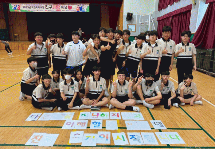 À̳¯ ÇлýµéÀº ¹Ýº°·Î Çùµ¿ÇØ ±ÛÀÚ ÆÛÁñÀ» ¸ÂÃß¸ç ¹®ÀåÀ» ¿Ï¼ºÇÏ´Â Çùµ¿ ¹Ì¼Ç°ú Ä£±¸¿¡°Ô Æò¼Ò ÀüÇÏÁö ¸øÇÑ Áø½ÉÀ» ´ã¾Æ¡®Ä£±¸»ç¶ûÄ«µå¡¯¸¦ ÀÛ¼ºÇϰí Àü´ÞÇß´Ù. Çлýµé ¸ðµÎ ¼·Î µµ¿ì¸ç ¹Ì¼ÇÀ» ¿Ï¼öÇÏ´Â °úÁ¤¿¡¼ ÀÚ¿¬½º·´°Ô Çùµ¿ÀÇ Á߿伺À» ±ú´Ý°í Ä£±¸¿¡°Ô µû¶æÇÑ ¸Þ½ÃÁö¸¦ ÀüÇÏ¸ç ±àÁ¤ÀûÀÎ Çб³ ¹®È¸¦ ¸¸µå´Â ÀǹÌÀÖ´Â ½Ã°£À» º¸³Â´Ù.