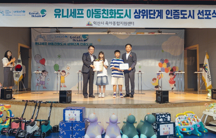 ÀÍ»êÀº ¾Æµ¿ÀÇ 4´ë ±Ç¸®(»ýÁ¸¡¤º¸È£¡¤Âü¿©¡¤¹ß´Þ)¸¦ º¸ÀåÇϱâ À§ÇÑ Á¤Ã¥ ÃßÁø ¼º°ú¿Í ³ë·ÂÀ» ÀÎÁ¤¹Þ¾Æ, Áö³´Þ 20ÀÏ À¯´Ï¼¼ÇÁ Çѱ¹À§¿øÈ¸·ÎºÎÅÍ »óÀ§´Ü°è ÀÎÁõÀ» ȹµæÇß´Ù.