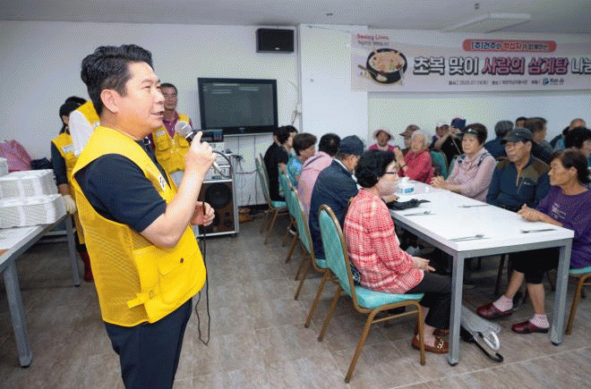 ³²¼º·Ä ȸÀåÀº ¡°¿ä±Ù·¡ ½ÉÇÑ ´õÀ§¿Í ºñ°¡ Áö¼ÓµÇ°í Àִµ¥ Ãʺ¹À» ¸Â¾Æ º¸¾ç½ÄÀ» µå½Ã°í ³²Àº ¿©¸§µµ °Ç°ÇÏ°Ô º¸³»½Ã±æ ¹Ù¶õ´Ù¡±¸ç ¡°¾ÕÀ¸·Îµµ ±Þ½Ä ³ª´®ÅÍ(±âÁ¸ ¡®±¹¼ö ³ª´®ÅÍ¡¯)¸¦ Æ÷ÇÔÇÏ¿© ´Ù¾çÇÑ ºÀ»çȰµ¿À¸·Î ÀÌ¿ôµé¿¡°Ô »ç¶û°ú ³ª´®À» ½ÇõÇϰڴ١±°í ¸»Çß´Ù.