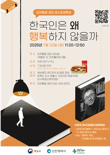 ÇÑÆí, ÀÎõÅëÀÏÇ÷¯½º¼¾ÅÍ´Â ¸Å¿ù ÅëÀÏ, ³²ºÏ°ü°è, Àι®ÇÐ µî ´Ù¾çÇÑ ÁÖÁ¦·Î ¸í»çÃÊûƯ°À» ¿°í ÀÖÀ¸¸ç 8¿ù 20ÀÏ¿¡´Â ±èÁøÈ¯ ¹Ú»ç°¡ ¡®ÀÎõ¿¡¼ ãÀº ÅëÀϰú ÆòÈÀÇ ±æ¡¯À» ÁÖÁ¦·Î °¿¬ÇÒ ¿¹Á¤ÀÌ´Ù.