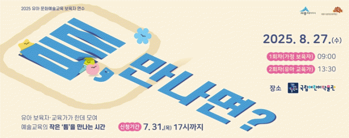 À¯¾Æ±â ¿¹¼ú±³À°ÀÇ Á߿伺À» È®»êÇϱâ À§ÇØ ¸¶·ÃµÈ À̹ø ÇÁ·Î±×·¥Àº À۳⿡ ÀÌ¾î ¿ÃÇØµµ ±¹¸³¾î¸°À̹ڹ°°ü¿¡¼ ³»´Þ 27ÀÏ °³ÃֵȴÙ. Âü¿©ÀÚµéÀº ÀÏ»ó ¼Ó¿¡¼ ¿¹¼ú±³À°ÀÇ ÀÛÀº ¡®Æ´¡¯À» °æÇèÇÏ´Â ½Ã°£À» °®°Ô µÈ´Ù.